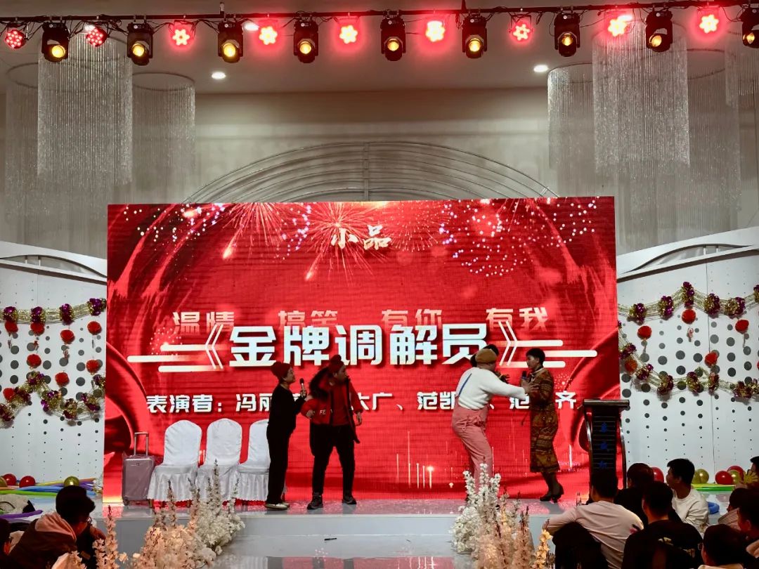 薈萃星光,觥籌熠熠,隨著頒獎典禮的結(jié)束,晚會在瀟灑的開場舞《驍》中正式拉開帷幕,隨后,公司各部門工作人員為大家?guī)砹宋乃囇莩?,歌曲演唱《笨小孩》、《海芋戀》、《著魔》,黑管?dú)奏《上海灘》,舞蹈表演《科目三》、《桃花朵朵開》,小品節(jié)目《四大才子招親》、《金牌調(diào)解員》,大合唱《壯志在我胸》,一段段精彩紛呈的節(jié)目收獲了臺下觀眾源源不斷的掌聲與歡呼聲,展現(xiàn)了泰威人蓬勃向上的青春風(fēng)采。其中,小品《金牌調(diào)解員》的演員們,憑借著精湛、搞笑的演技,得到了全場觀眾們的認(rèn)可,小品被評為全場最佳節(jié)目。